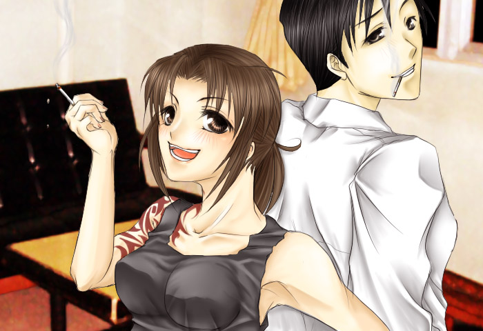 本当はレヴィとバラライカさん描きたかったんだ。始めはロックの位置にバラライカさんがいたんだ…。ぅおーんっバラライカさーン!