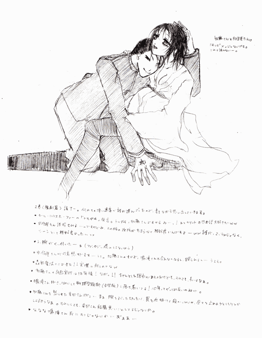 加藤さんは、由佳理たんのことを帝都壊滅の為の道具としか見ていない。また由佳理たんの中のものも必要。でもこれも結局は道具なんだと思う。自分にとって必要な道具だから慈しむ、そんな感じなのではないかと思っている。