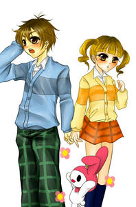 マイメロ「かけるくんと歌ちゃん、おててつないでと~っても仲良しなのね♪うふっ♪いいなぁ、マイメロもいっしょにつなぐ~」